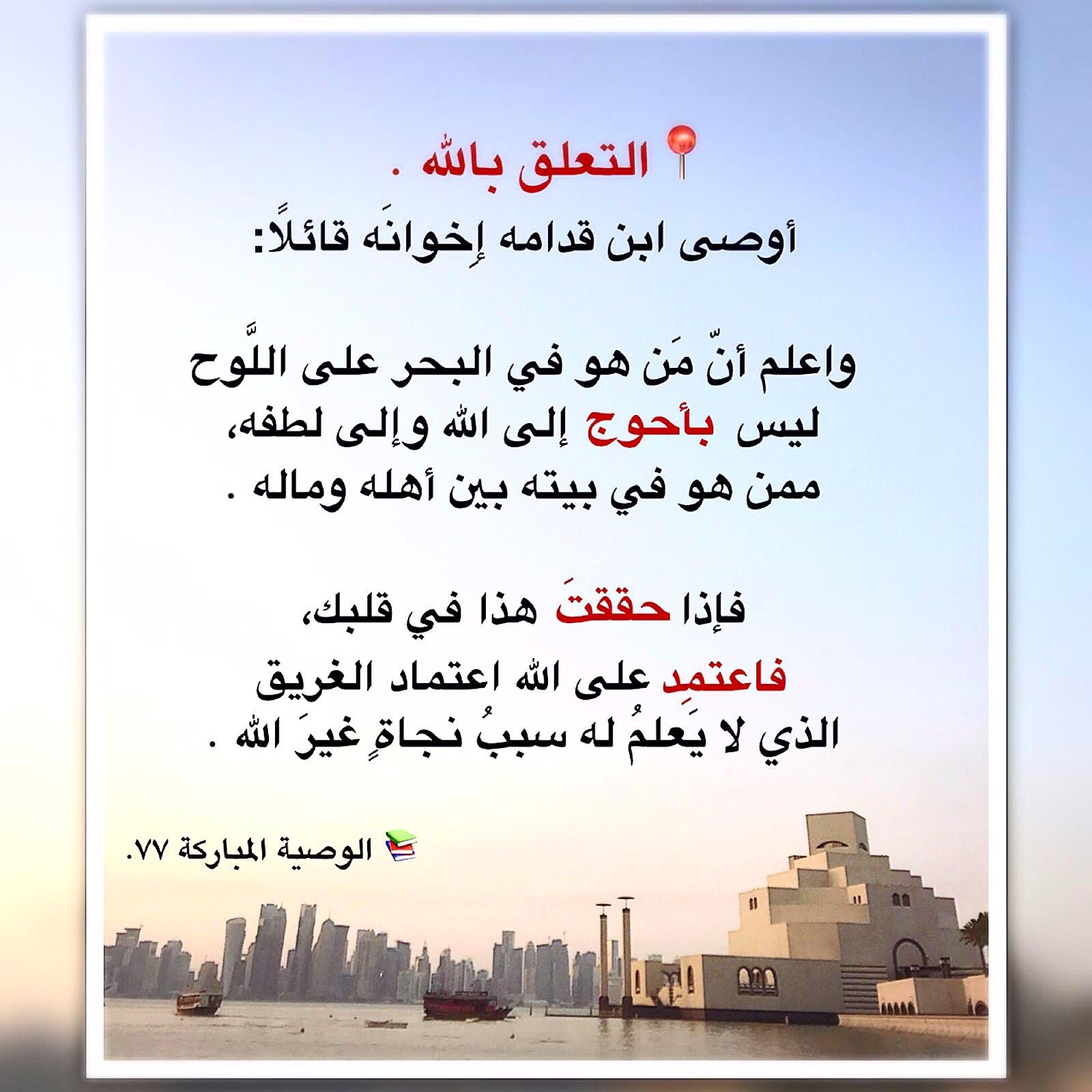 السلفية منهج حق twitterissa أو ص ـى اب ـن ق ـد ام ة إ خ ـو ان ه ق ــائل ا واعلم أن من هو في البحر على الل وح ليس بأحوج إلى الله وإلى لطفه ممن هو في بيته بين أهله وماله فإذا